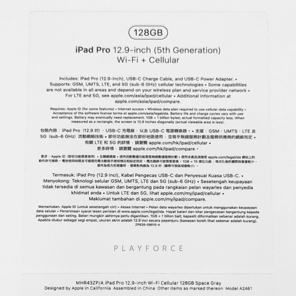 Apple iPad Pro 12.9, 5th GenerationM1 Chip, 5G, 128GB, Wi-Fi+Cellular, Space GreyRetail$1,869.00Details. Overall Mint condition. Local Set (MHR43ZP/A). Apple warranty till: July 2022. Verifiable via Apple's websiteIncludes. Box & manual. Charger & cableDelivery Options. Free delivery (Same day). Arrange collection at Seletar Mall (797653)
